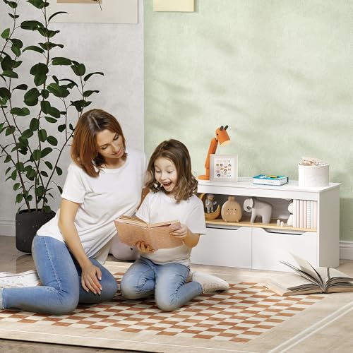 Qaba - Qaba Kids Bookshelf with 2 Drawers, Toy Storage Organizer with Large Tabletop, Storage Shelf, for Nursery, Kids Room, Bedroom, Living Room, White