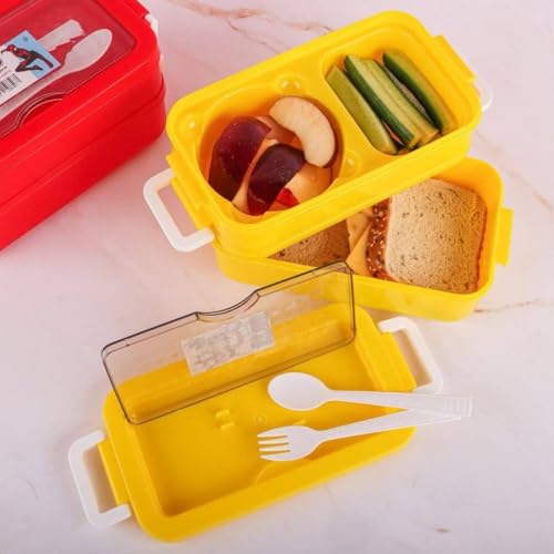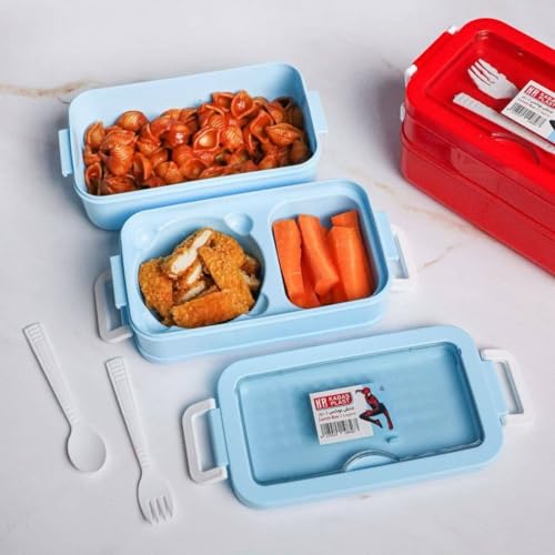 Generic - Qabas Premium 2-Tier Lunch Box with Utensils - Airtight & Leak-Proof Bento Box - Double Layer Food Container for School, Office & Gym - BPA-Free & Durable Meal Prep Box (Multi-Color)