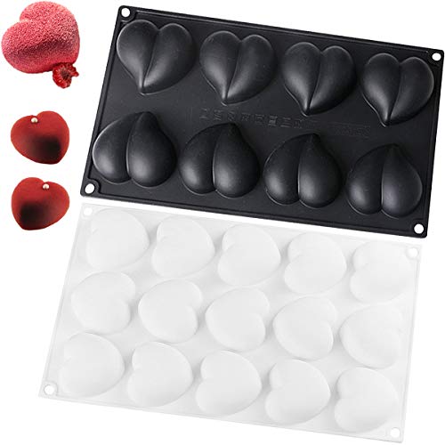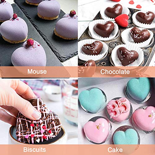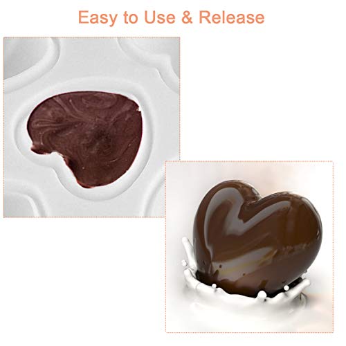 QAQGEAR - قوالب سيليكون قلب QAQGEAR لخبز موس كعكة الشوكولاتة والحلوى والبسكويت والصابون والهلام هدية عيد الحب DIY ، غير لاصقة سهلة الإصدار (عبوتان)