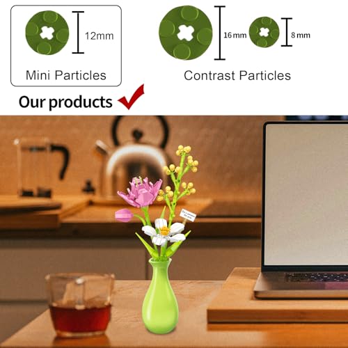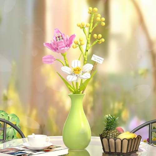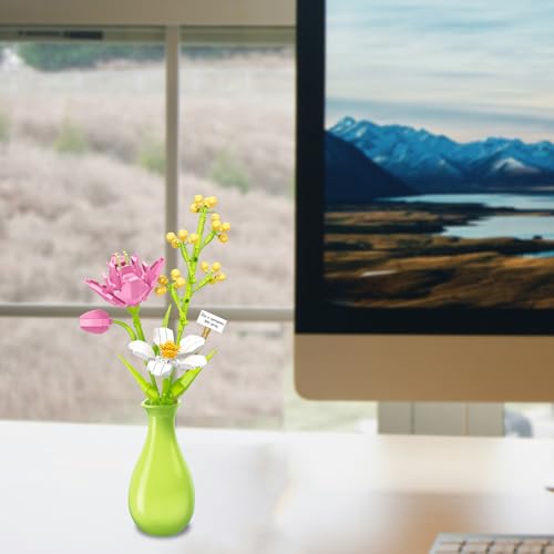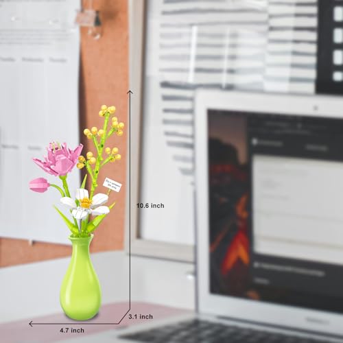 QARULUS - مجموعة بناء باقة زهور صناعية مع مزهرية من 229 قطعة من كارولوس، مكعبات بناء شجرة بونساي، مجموعة نباتية لعيد الحب هدية للنساء والفتيات والبالغين والاصدقاء والاطفال من سن 6 سنوات فما فوق