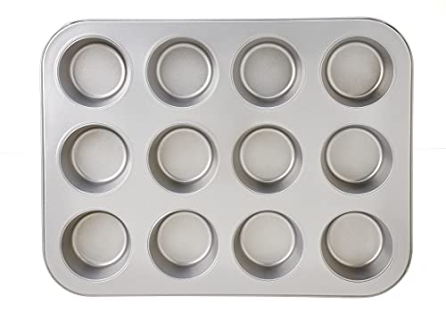 Spaceshoop - Qasem Metal Non Stick Cupcake Mold, 12 Holes, 35.5 x 26.5 x 3 cm - Silver