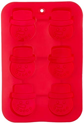 Qasem - Snowman Shaped Silicone Cake Mold, 6 Holes - Red