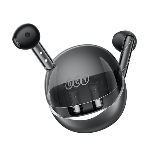 QCY - QCY AilyBuds Clear Wireless Earbuds, 13mm Drivers HiFi Bluetooth 5.3 Earphones, 4 Mics ENC Clear Call, Low Latency Mode, 10-Min Quick Charge with Transparent Case, Semi in-Ear Comfortable Fit, Black