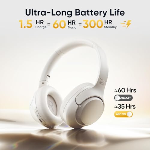 QCY - QCY سماعات اذن لاسلكية H3 بلوتوث 5.3 خاصية الغاء الضوضاء النشطة صوت عالي الدقة رأس قابلة للطي وقت تشغيل 60 ساعة متوافقة مع اي او اس/اندرويد أبيض