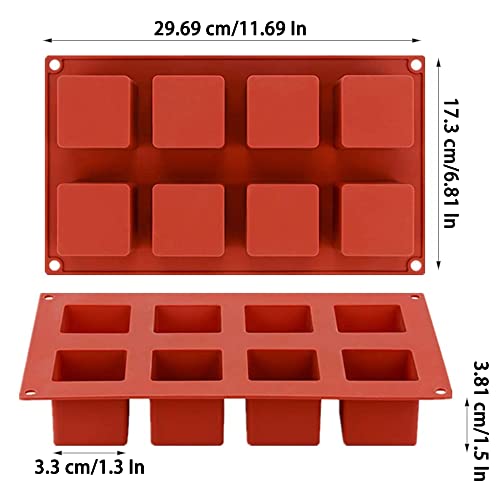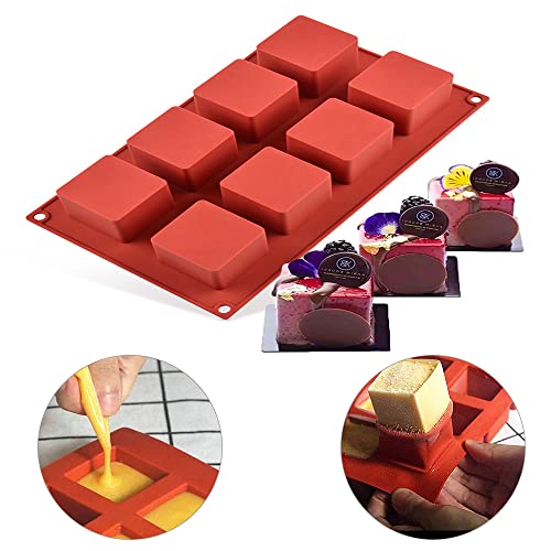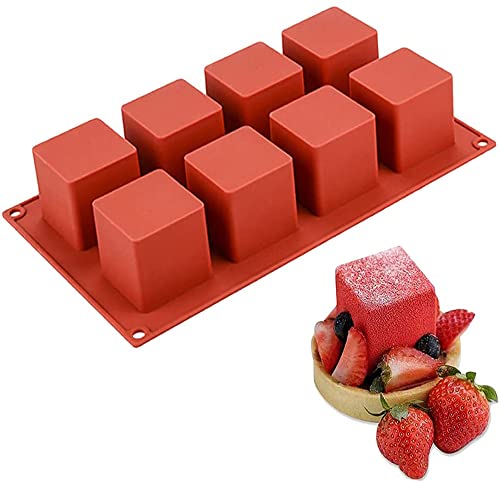 QDDC - قالب سيليكون ثلاثي الأبعاد بشكل مربع يحتوي على 8 فتحات على شكل مكعبات مثالي لتحضير كيك الموس والصابون والشوكولاتة وغيرها لون أحمر، من كيو دي دي سي