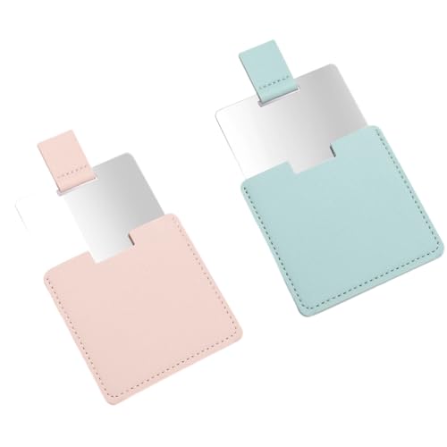 QEDBOJE - 2 Pack Mini Mirrors Ultra Thin Stainless Steel Unbreakable with PU Leather Case, Portable for Makeup, Travel and Camping Ultra Slim