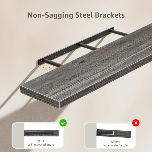 QEEIG - QEEIG Bathroom Shelves 48 inches Long Wall Shelf Large Extra Long 48 x 9 inch Set of 2, Grey (008-120GY)