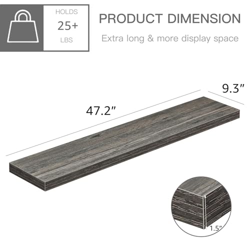 - ✅ 47.2" EXTRA LONG: 9.3"D x 47.2"W x 1.5"H. Contains 2 shelves. With a longer design that provide plenty of capacity for storage