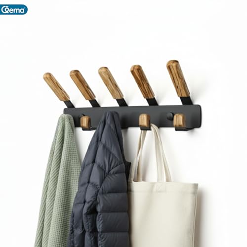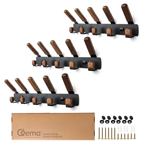 Generic - QEMA Wall and Door Coat Hanger – Premium Teak Wood & Metal – Waterproof Black (Set of 3)