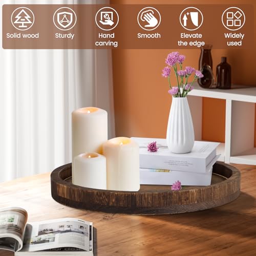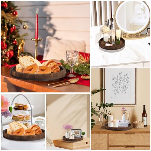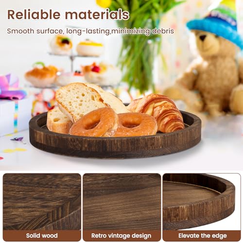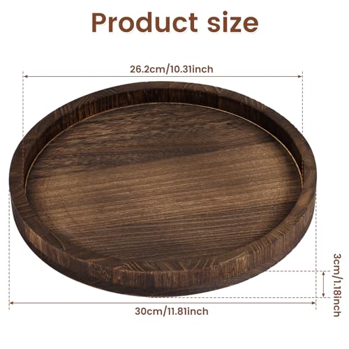 QENWKXZ - Wood Round Tray, 11.8 Inch Classic Dessert Round Tray, Tea Plate Base for Living Room, Coffee Table for Kitchen, Farmhouse Table Decorative Tray