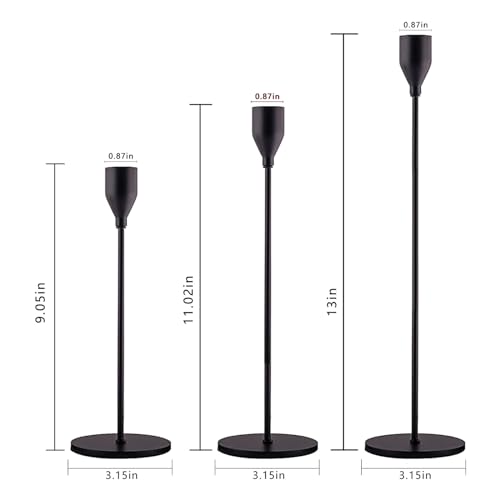 - ✨【Use and Maintenance】: The diameter of the taper candle holders is 0.87 inches (22 mm), which is suitable for 3/4 inch, 7/10 inch candles and LED candles. Use soft cloth to clean and dry. Do not use harsh chemicals or abrasives or sunlight exposure.