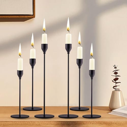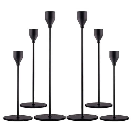qfandben - Candlestick Holders Gold Candle Stick Candle Holder Tall Taper Candle Holder for Home Decor, Wedding, Dinning, Party, Anniversary, Fits 3/4 Inch Thick Candle&Led Candles (Black-6Pack)