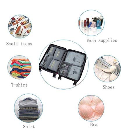 QFULFUN - 7 Set Packing Cubes for Travel, Luggage Organizers with Shoe Bag, Compression Pouches Clothes Suitcase Lightweight Storage Bag