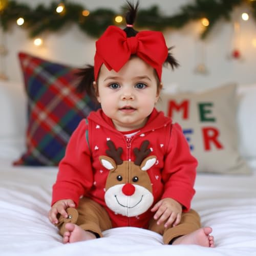 QFV - Baby Girl Bows Newborn Headband 0-6 Months Infant Big Bows for Birthday/Baby Shower/Photography/Baby Gifts (Red&Pink)
