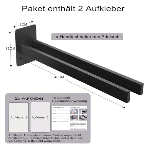 - 【Applicable surfaces】The self-adhesive towel holder double arm is only suitable for clean, dry and flat surfaces (such as ceramic tiles, metal surfaces, glass, etc.). Please make sure the wall is clean and dry before installation. Not recommended for paints, wallpaper and uneven surfaces.