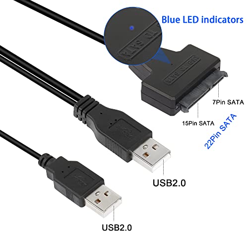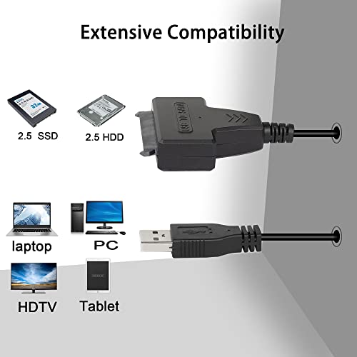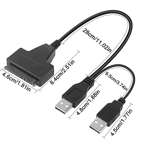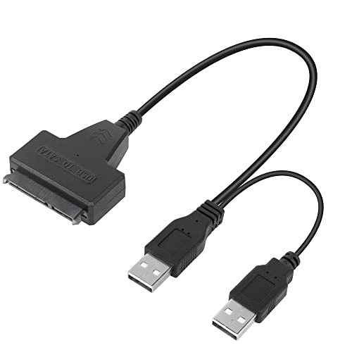 QIANRENON - كابل محول من USB 2.0 إلى ساتا 3 للقرص الصلب من كيانرينون، كابل محول ساتا إلى USB 2.0 للقرص الصلب 2.5 بوصة من نوع SSD أو HDD، كابل هارد USB مزدوج مع منفذ تيار مستمر، لون أسود