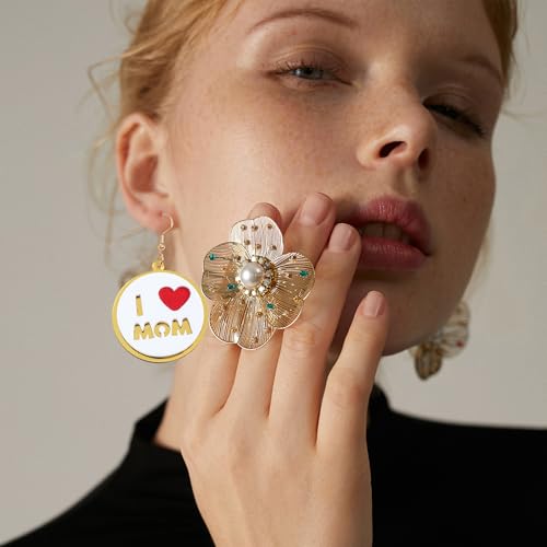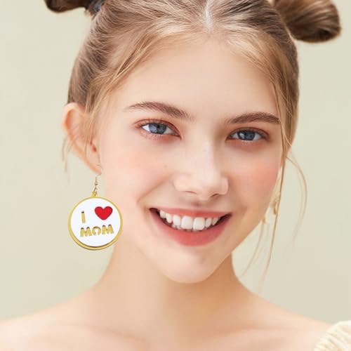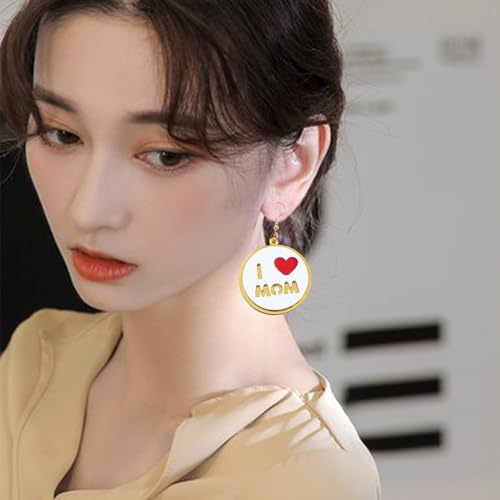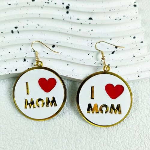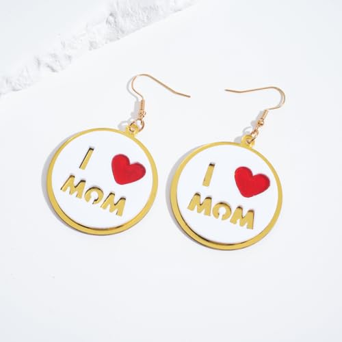 QIAOLEHUI - Mother's Day I LOVE MOM DAD Letter Acrylic Dangle Earrings for Women Mom Dad Jewelry