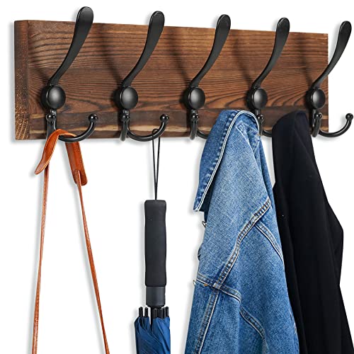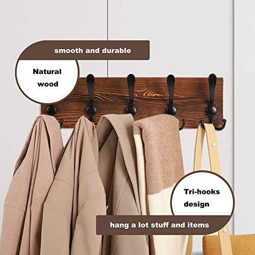 QILICZ - خطافات معاطف خشب جدارية رف 15 خطاف متعددة الأغراض للملابس وغرفة النوم والمطبخ من كيليكس بني