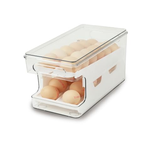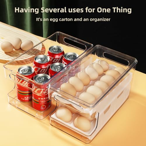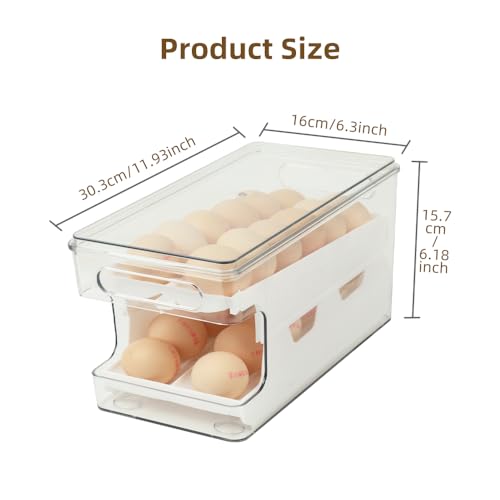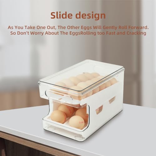 QINGCAOJIA - Egg Holder for Refrigerator,2 Tier Rolling Egg Dispenser 24 Eggs Storage,Automatic Egg Roller Organizer