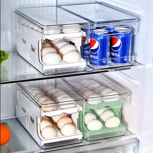 - Effortless Automatic Sliding:This innovative refrigerator egg holder is designed with a 7° slope to ensure eggs naturally rolling for easy removal. The unique feature guarantees older eggs are used first, maintaining freshness within the container