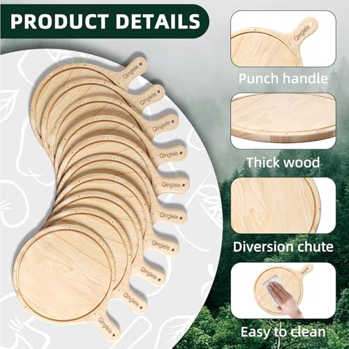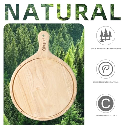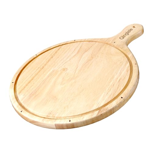 Qinglele - Wooden Pizza Plate, Pizza Board Made of Rubber Wood, Thick, Pizza Chopping Board Round, Pizza Wooden Board Large with Handle, Pizza Plate for Pizza 30.5 cm Diameter
