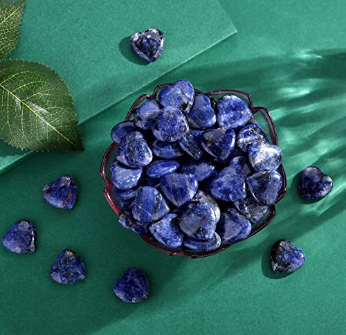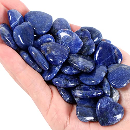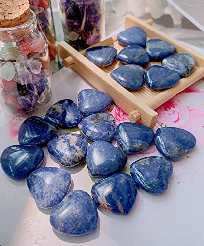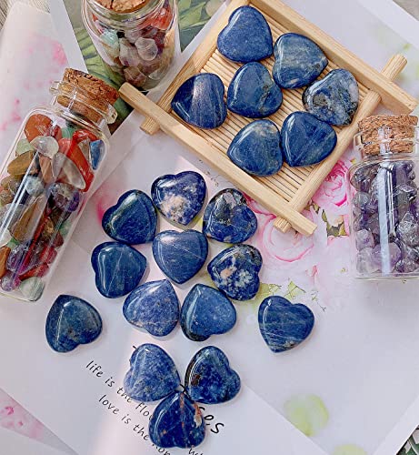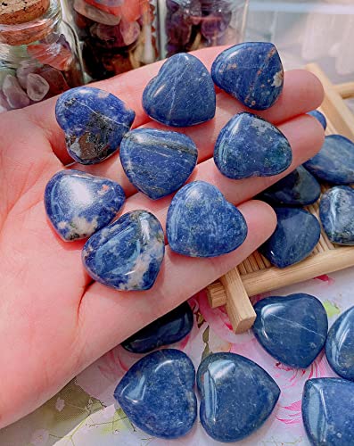 QINJIEJIE - QINJIEJIE 20 PCS Sodalite Heart Crystals Natural Polished Pocket Stones Healing Palm Love Gemstones Set Bulk Wholesale Reiki Energy Balancing Meditation