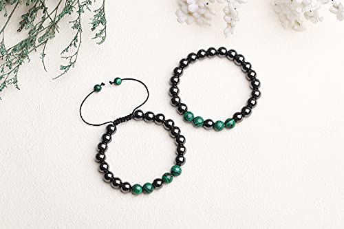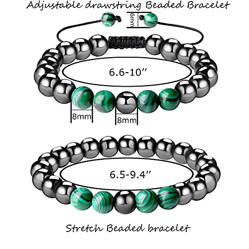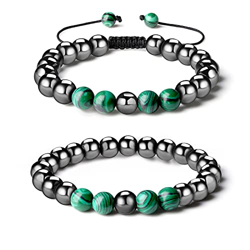 QINJIEJIE - زوج اساور مغناطيسية حجر زجاج بركاني روز الكوارتز الابيض الفيروزي خرز سوار العلاقة الشفاء بحجر الكريستال المتجمد للنساء والرجال من كينجيجي، عبوة من قطعتين