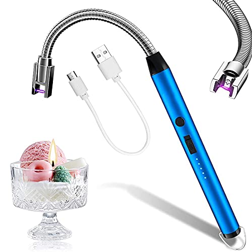 Generic - QINROOM Candle Lighters Long Electric Arc Lighter, Rechargeable Windproof 360° Flexible Neck USB Lighter for Light Candles Camping Barbecue Gas Stoves Cooking(Blue)