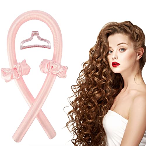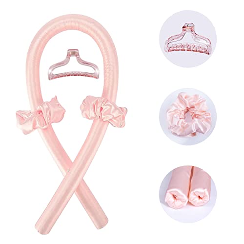 QinYing - أربطة رأس مع بكر لتمويج الشعر بدون حرارة من كين يينغ، أداة تمويج الشعر الطويل بخطوة واحدة، أداة تموج الشعر خلال الليل مع مشابك وأربطة للشعر، مجموعة للتصفيف الشعر بنفسك قبل النوم، لون ذهبي فاتح ووردي