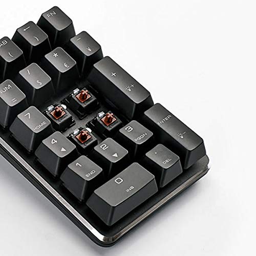 - 5. 21 keys mechanical numeric keypad is suitable for laptop users, banking, financial securities, business workers or Used with 87 keyboards, 82 keyboards, 68 keyboards, 61 keyboards and other keyboards without numeric section.
