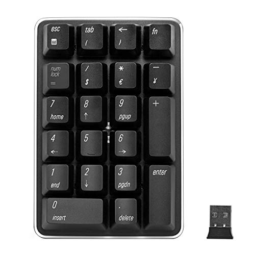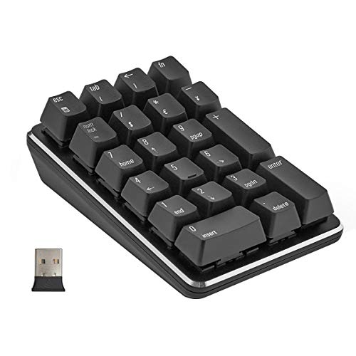 - 1. This 21-keys Mechanical Numeric Keypad use a stable and reliable 2.4G wireless connection. Smart connection, no need to re-code after replacing the battery. The bottom cover is equipped with a special receiver storage place.