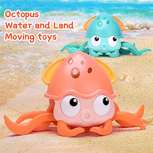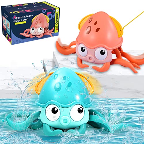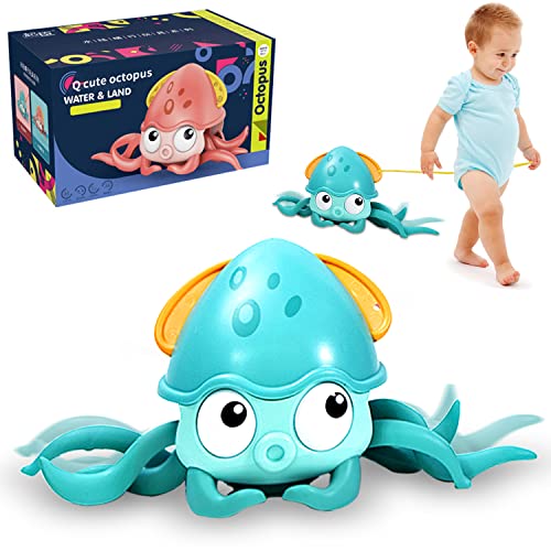QIUXQIU - لعبة حمام على شكل أخطبوط زاحف مع خيط سحب لحوض الاستحمام - مناسبة للإهداء للأطفال الأولاد والبنات في عيد الميلاد والكريسماس من كيوكسيو