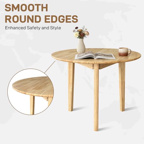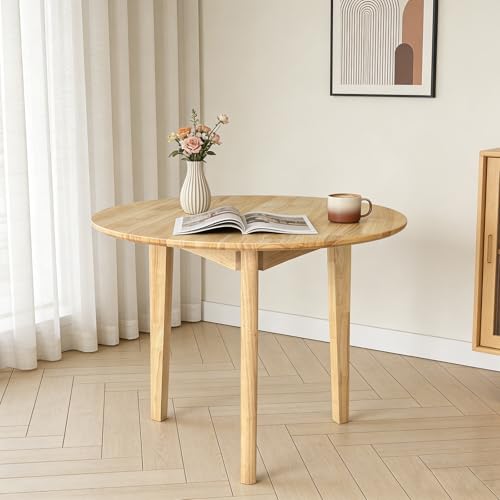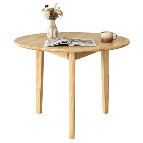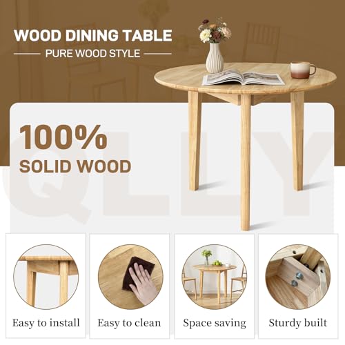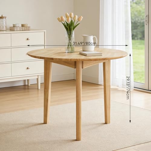 QLLY - كيو لي طاولة طعام دائرية، طاولة طعام من الخشب الصلب، طاولة مطبخ، طاولة خشبية، ارجل مسطحة (طبيعي، 31.49 انش/ 80 سم