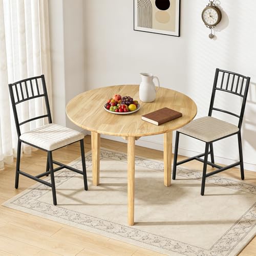 - طاولة طعام مستديرة، سطح الطاولة أملس ومستدير، بدون حواف حادة، مما يضمن السلامة لك ولعائلتك. يبلغ قطر طاولة الطعام هذه 80 سم وارتفاعها 75 سم، مما يجعلها مثالية لشخصين إلى 4 أشخاص. إنه الخيار المثالي للوجبات المريحة أو المساحات الصغيرة
