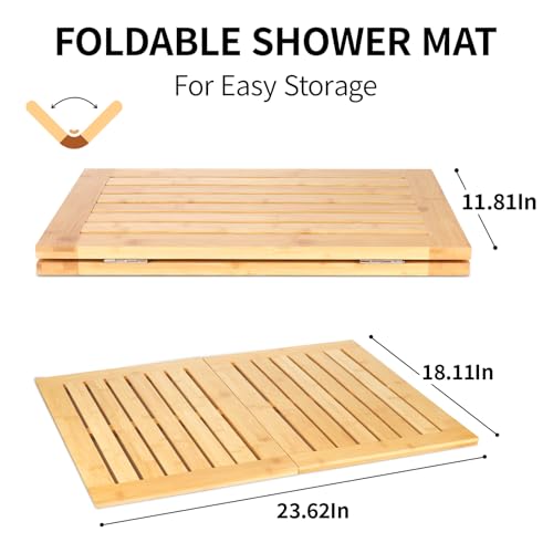 - 【Upgraded Foldable Design】 Our bamboo bath mat has upgraded foldable design. Simply fold it up when not in use or take it with you on trips to use in hotel bathrooms or at the pool