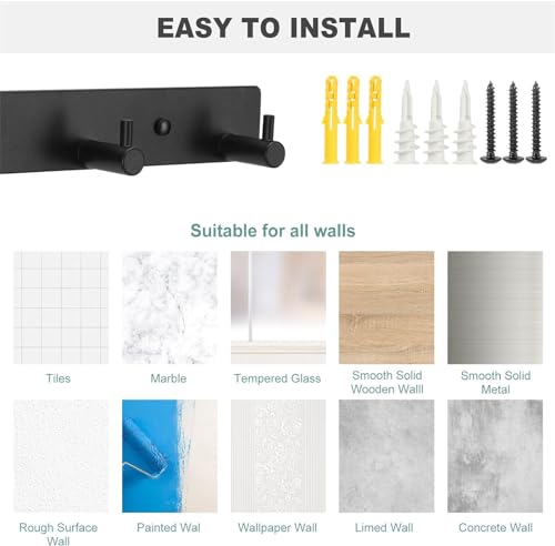 QNIIAED - Door Hooks Screw in, SUS 304 Stainless Steel Coat Hooks Wall Mounted for Bedrooms, Coat Rack Hangers for Bathrobe Towel Clothes Dressing Gown in Bathroom(Black)