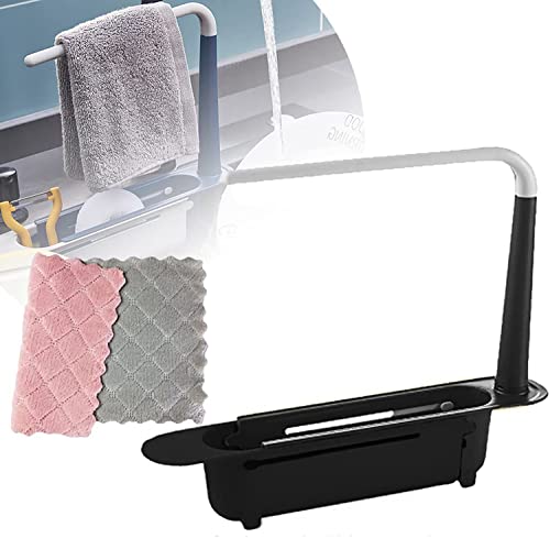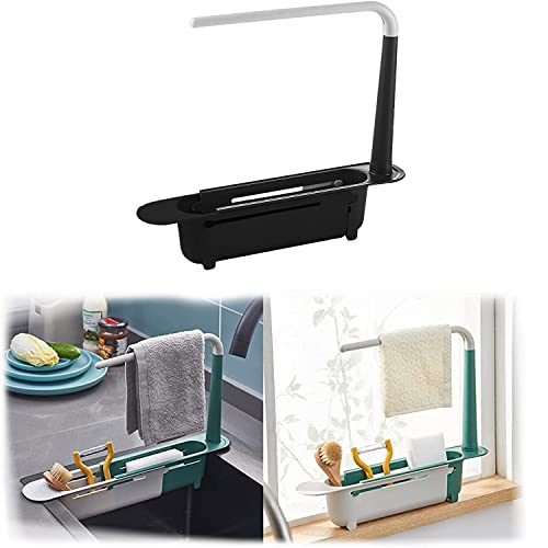 QNMD - رف تخزين مطور بأنبوب متداخل للحوض، حامل رف تخزين 2 في 1، سلة تصريف قابلة للتوسيع للمطبخ (لون أسود)، أكريلونيتريل بوتادين ستايرين
