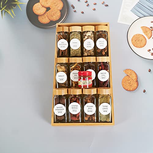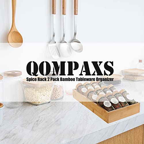 Qompaxs - منظم ادوات المائدة من الخيزران، حامل زجاجات التوابل، منظم درج وخزانة، منظم لسطح المطبخ وصينية تخزين