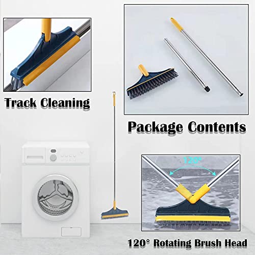 QONETIC - فرشاة تنظيف البلاط 2 في 1 مع مساحة، فرشاة تنظيف أرضيات قابلة للدوران بزاوية 120° بمقبض طويل للحمام والمطبخ المنزلي من كونتيك (مساحة حمام)