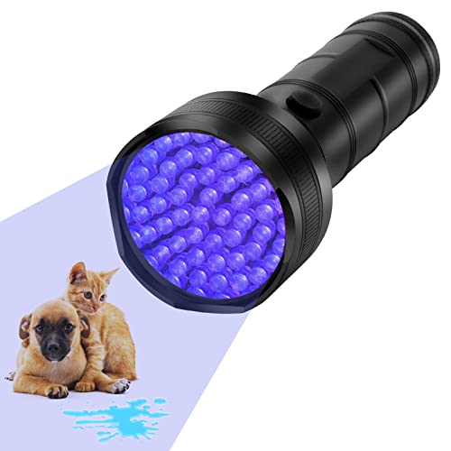 QONYFONE - مصباح يدوي K2 أسود بضوء الأشعة فوق البنفسجية من كونيفون، 395 نانومتر، 51 لمبة ليد، مصباح محمول مقاوم للماء لكشف بول الحيوانات الأليفة والبقع الجافة وحشرات الفراش