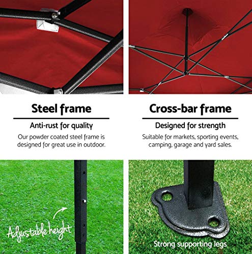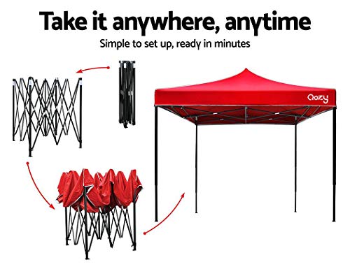 Qozy - QOZY 3x3m Gazebo Outdoor Pop Up Tent Folding Marquee Party Camping Market Canopy Shade Pavilion Shelter Event BBQ Outdoor Garden Red