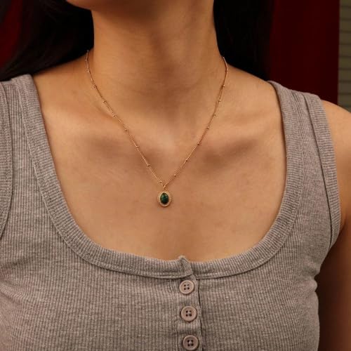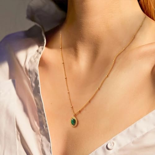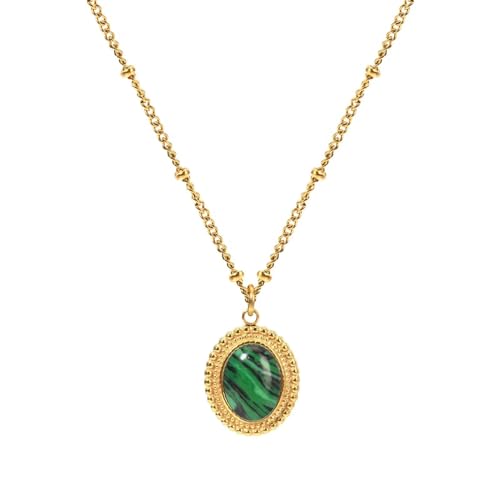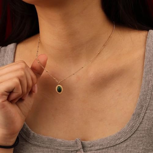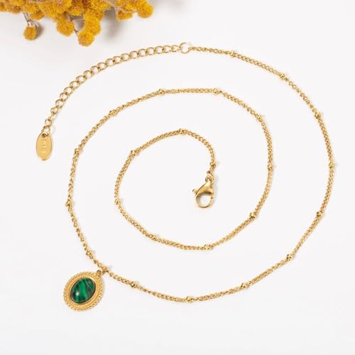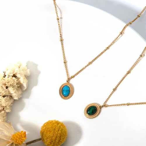 Qshop - QSHOP® Discover the Beauty of Our Necklaces with Dainty Oval Pendant with Natural Stone Stainless Steel 18K Gold Plated Adjustable Dainty Jewelry Chunky Jewelry Necklace for Girls Women