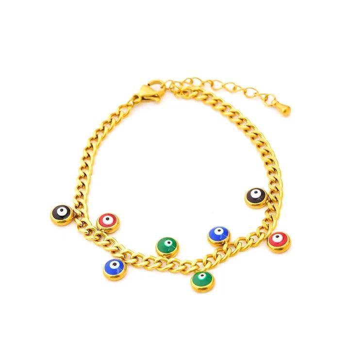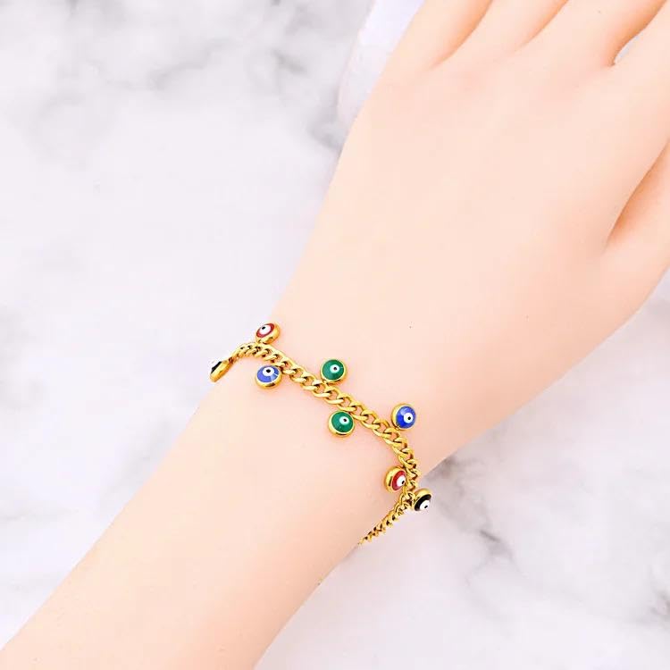 Qshop - QSHOP Enjoy a Touch of Style with Blue Eye Turkish Design Opal Evil Eye Bracelets Stainless Steel 18K Gold Plated Adjustable Fashion Jewelry Bracelets Chunky Jewelry for Girls Women