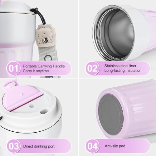 - ❄️☕【مادة عالية الجودة】كوب قهوة مزدوج الجدار للسفر مصنوع من الستانلس ستيل عالي الجودة، آمن ومتين، يحافظ على المشروبات بدون رائحة غريبة. غطاء واقٍ مطور حديثًا مضاد للانزلاق يمنع كوب السفر من السقوط، والجزء السفلي من كوب القهوة المعزول يحتوي على نعل مطاطي لمنع الخدوش السطحية أو الانزلاق.