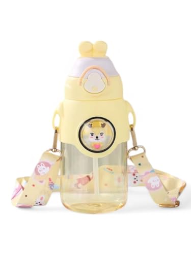 Qshop - QSHOP Kids Water Bottle Cartoon School Water Bottle with Straw 750ml Healthy Plastic Reusable Water Bottle Shoulder Strap and Holder Suitable for School Girls Boys (Yellow)