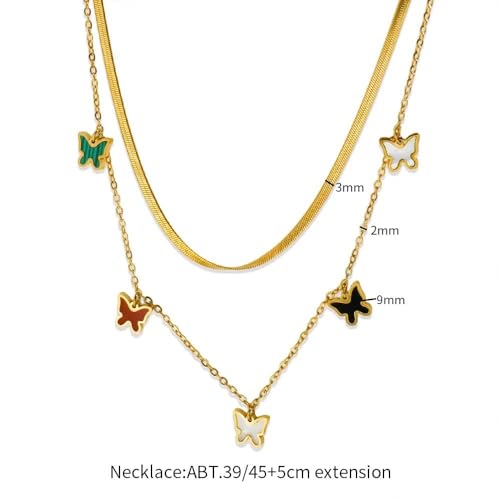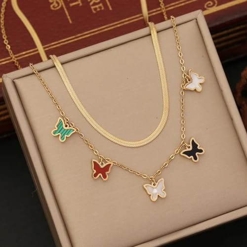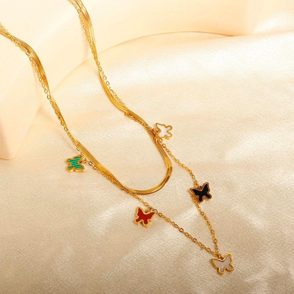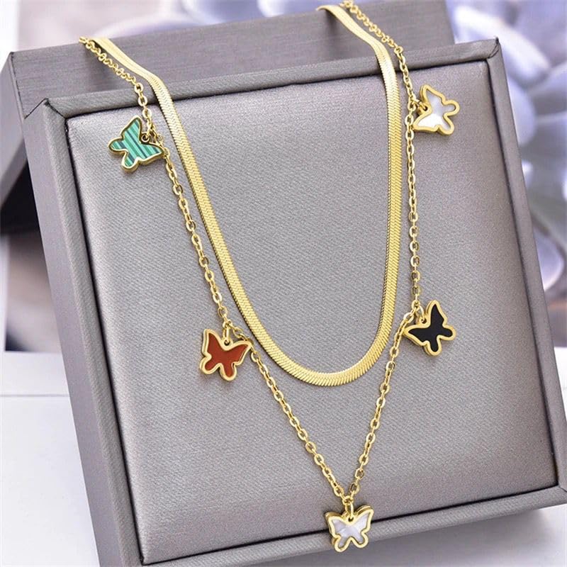 Qshop - QSHOP® Layered Heart Pendant Necklace with Opal Stones Jewelry for Women Girls 18K Gold Plated Stainless Steel Adjustable Dainty Jewelry Necklace Chunky Jewelry for Girls Women