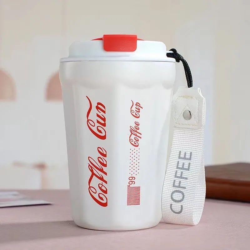 Qshop - QSHOP Premium Vacuum Insulated Stainless Steel Thermal Mug, 350 ml Leakproof BPA Free Sports Water Coffee Tea Travel Mug to Keep Drinks Hot or Cold (White)
