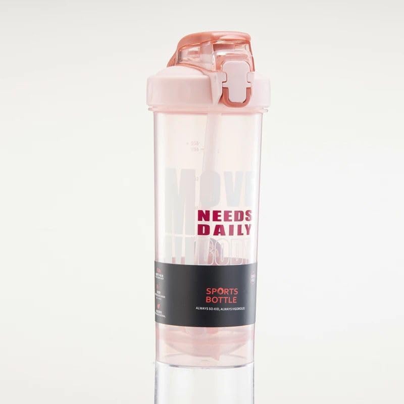 Qshop - QSHOP®Protein Shaker Bottle Leak Proof Sports Water Bottle with Straw, Portable Drinking Bottle Modern Durable for Gym and Fitness (800m) BPA Free (Pink)