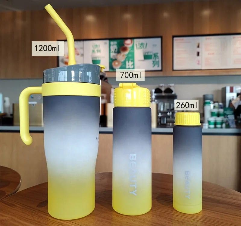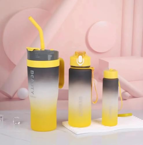 Qshop - QSHOP Water Bottles Set of 3 with Straw - Large Color Portable Sports Cups Large Capacity for Fitness, Camping, Party - Spill Proof for School Supplies (Grey)
