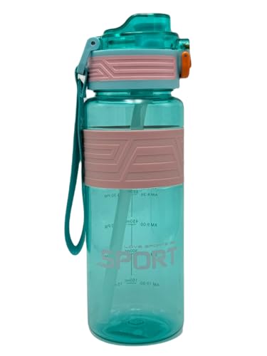 Qshop - QSHOPLeakproof Motivational Sports Water Bottle Portable Drinking Bottle for Gym Fitness with Straw and Strap, BPA Free (800ml) Premium Quality (Green)